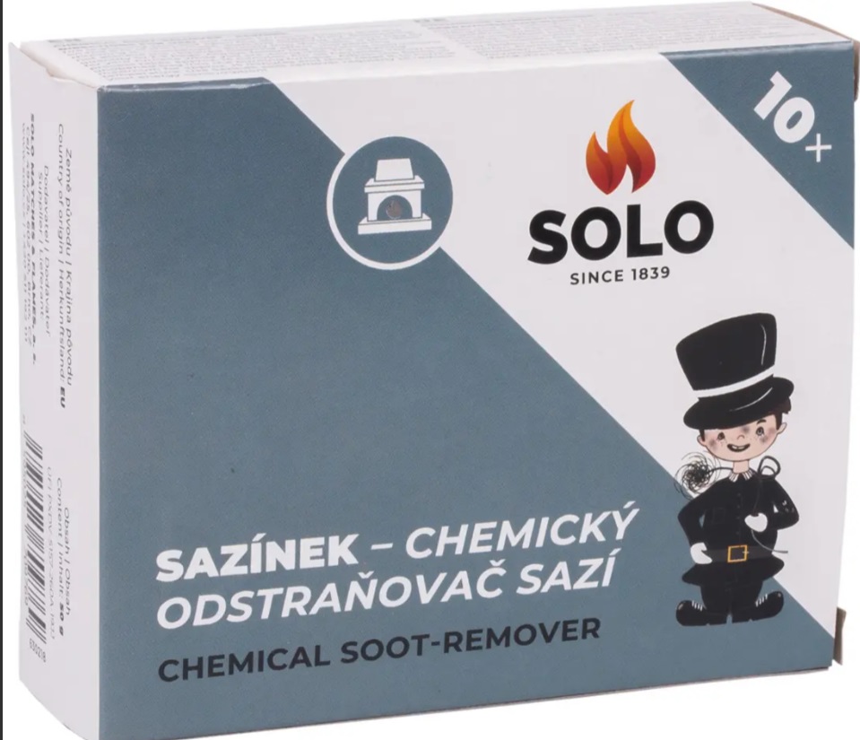Chemický odstraňovač saze SOLO SAZÍNEK. Balení obsahuje 10 ks sáčků. K čištění krbů a kamen od sazí. Slouží k čištění spalinových cest u krbů a kamen. Doba hoření 10 - 15 minut.