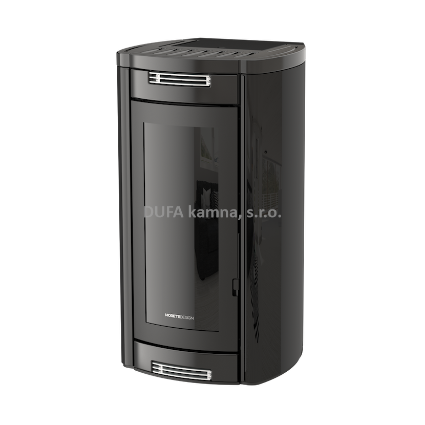 Peletová kachlová kamna s výměníkem Moretti Design MD ALADINO STYLE 19 (14). Výkon 3,4-16,3 kW. Výměník 14,0 kW. Spotřeba 1,45-3,62 kg/h. Zásobník cca 30 kg. Účinnost 92,4 %. Tah 10 Pa. Odkouření 80…