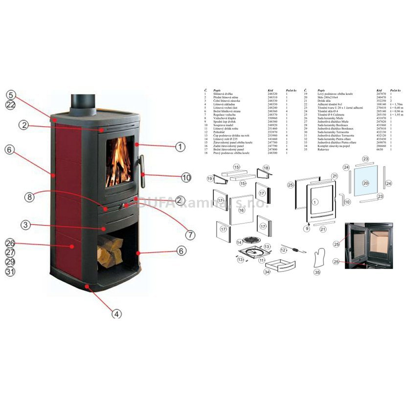 Malá krbová kamna IC ERIKA sada výstelka topeniště