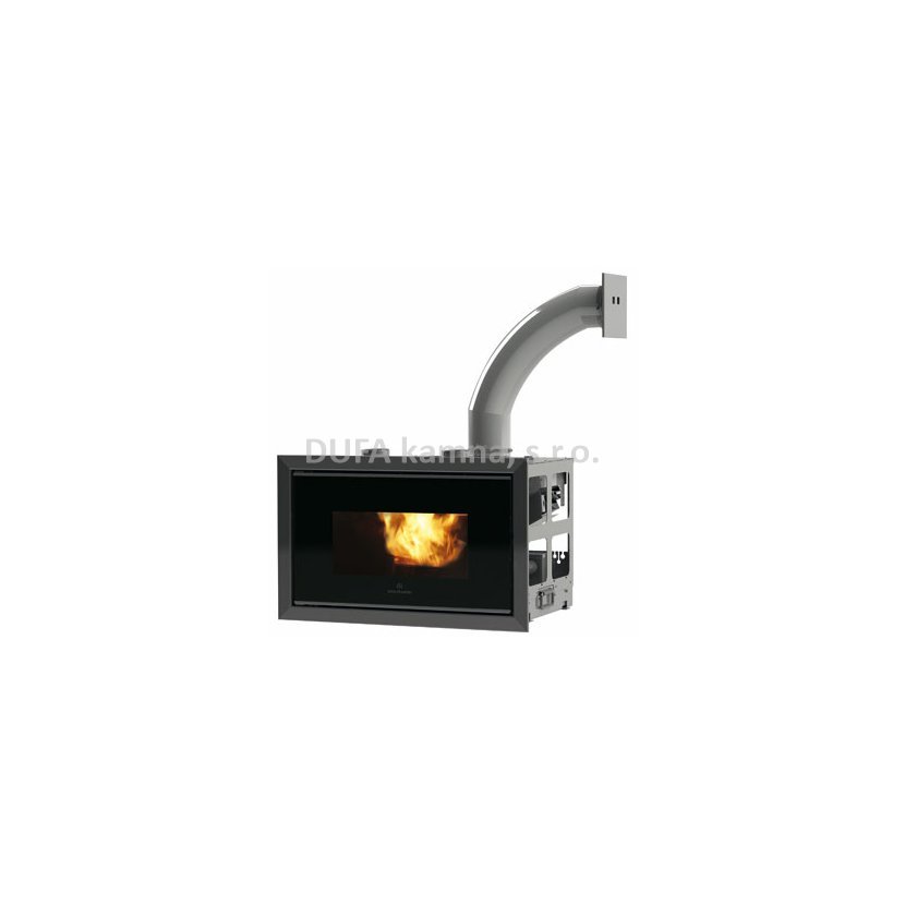 Krbová vložka na pelety EDILKAMIN PELLKAMIN 12 s možností teplovzdušných rozvodů. Příjemný výhled na oheň v panoramatickém formátu 16:9.