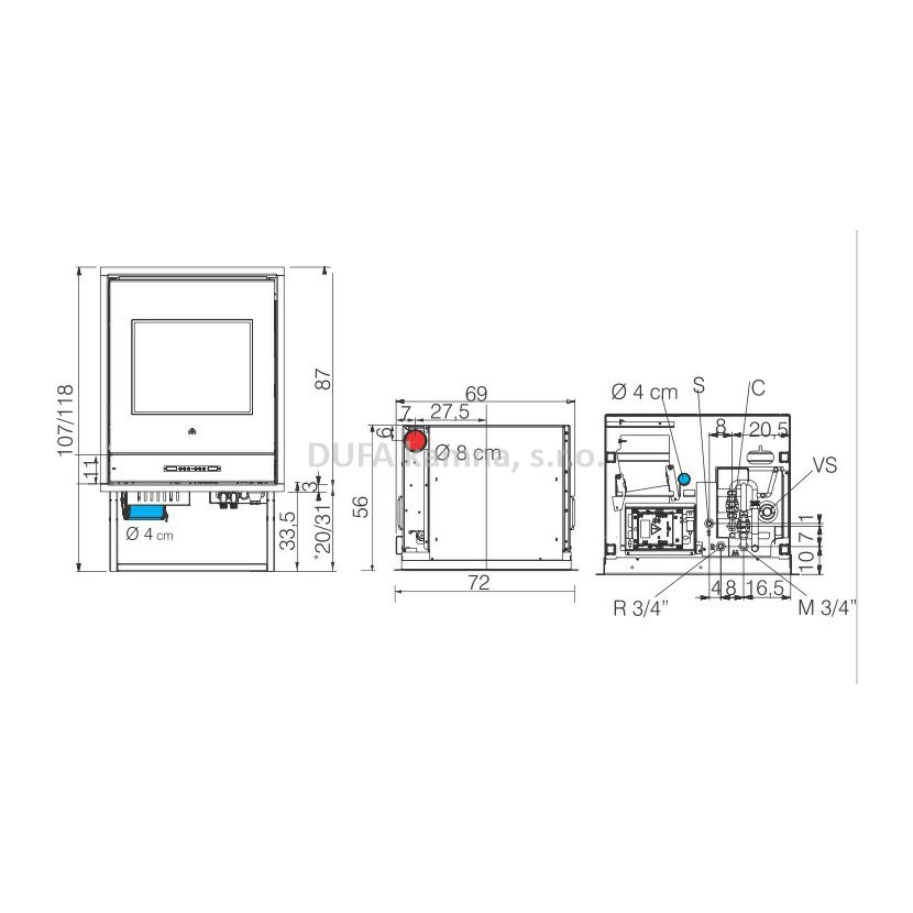 • Ocelové topeniště + litinový hořák